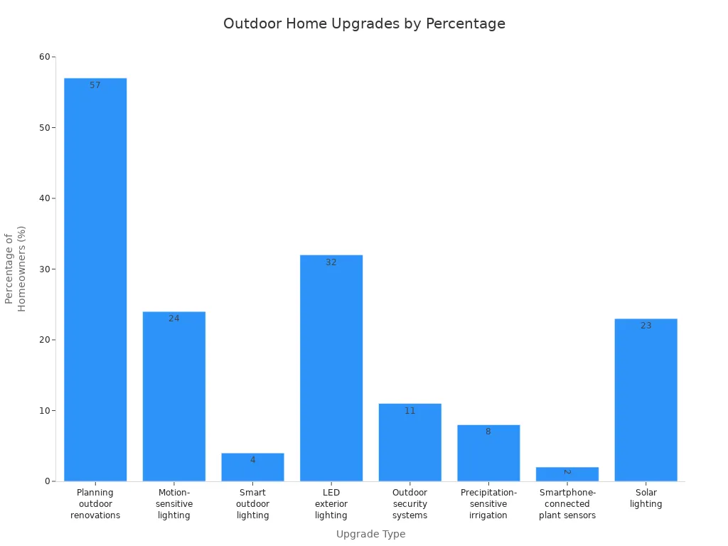 Завжди дивіться на рейтинг IP, перш ніж купувати світильники. Для більшості дворів IP65 добре захистить від дощу та пилу. Якщо ваші ліхтарі розташовані біля басейнів, виберіть IP67 для більшого захисту від води. Це допомагає вашим ліхтарям добре працювати в сувору погоду.