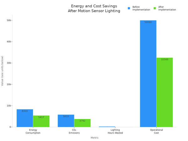 Економія енергії дуже важлива для заводів. Водонепроникне освітлення датчика руху включається тільки тоді, коли хтось є. Це економить багато енергії. Старі лампи постійно горять і витрачають енергію. Розумні світильники використовують датчики, щоб вмикати лише за потреби. Це може скоротити споживання енергії на 30-50%. Це корисно у великих приміщеннях, таких як склади.